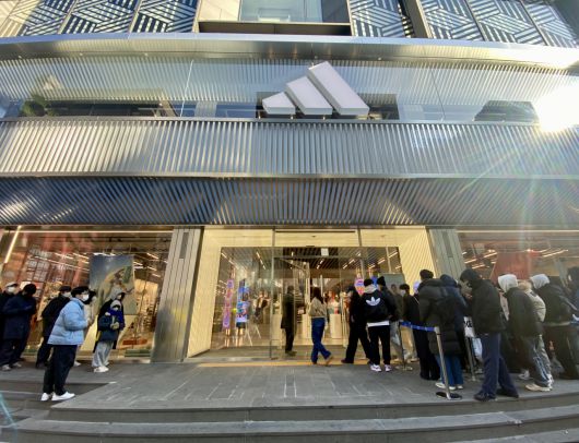 18일 오후 서울 중구 명동 엠플라자에 있는 아디다스 플래그십 스토어에 사람들이 입장하기 위해 줄을 서 있다. 신주희 기자 |