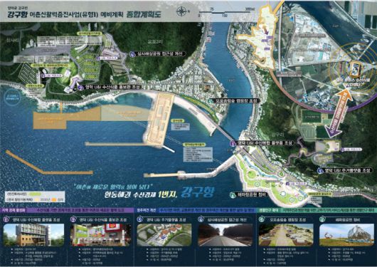 이번에 선정된 경북 영덕군 강구항에는 재정사업으로 수산식품 창업 클러스터를 지원하고, 관광 기반 민자사업과 연계해 수산·관광 복합 거점으로 집중 육성한다. 더불어 강구항 지역의 체류형 관광객 유입을 위해 대관람차 및 해상케이블카 조성, 대명 소노 호텔 및 해상빌리지 등 총 4263억원 규모의 민간 투자사업을 추진해 신규 일자리 1600개를 창출할 계획이다.