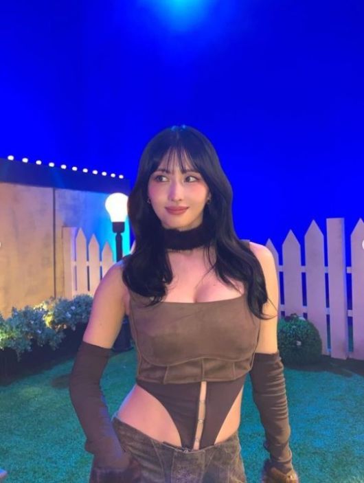 공개된 사진에는 골반 라인을 노출 시킨 파격 의상을 입은 모모의 모습이 담겼다. 섹시한 매력을 발산하고 있다.