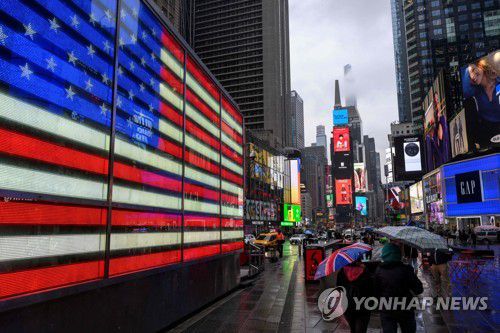 올해 1월 19일 비 내리는 미국 뉴욕시 타임스스퀘어 |