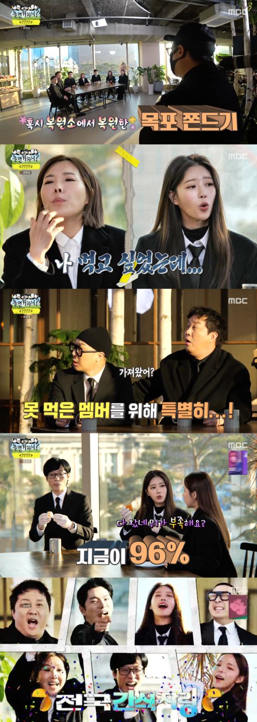근황 공개가 끝나자 PD는 ‘놀뭐 복원소’에서 인기를 끈 ‘목표 쫀드기’에 이어 SNS에서 많은 요청이 들어왔다며 오늘 전국 간식들을 소개하자고 말했다. 이와 함께 멤버들은 최신 버전으로 연구된 목포 쫀디기를 맛봤고, 대부분의 멤버들은 만족했으나 박진주는 “96%정도 복원된 것 같다. 아직도 수분이 부족하다”고 평가했다.