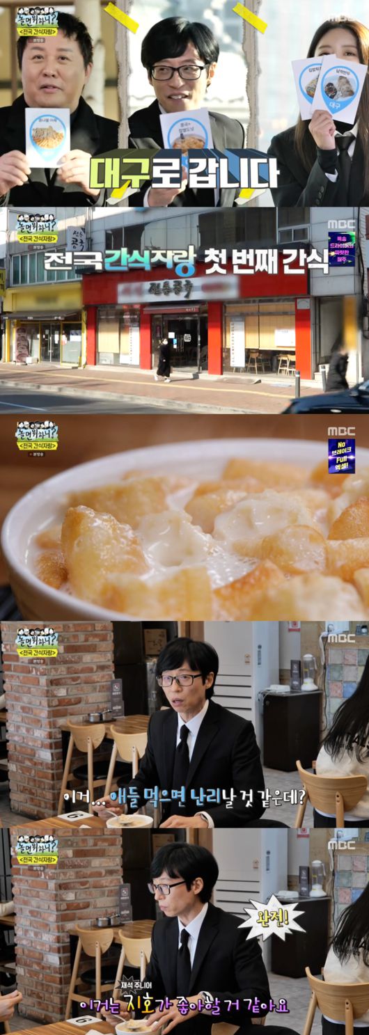 방송 말미 등장한 예고에서는 대구에서 콩나물 어묵 등 다른 간식을 맛보는 세 사람과 함께 전주로 떠난 신봉선, 이이경, 울산으로 떠난 하하, 박진주의 모습이 공개됐다. 이들은 전국에 있는 간식을 맛본 뒤 ‘전국 간식 지도’를 완성할 예정이다.
