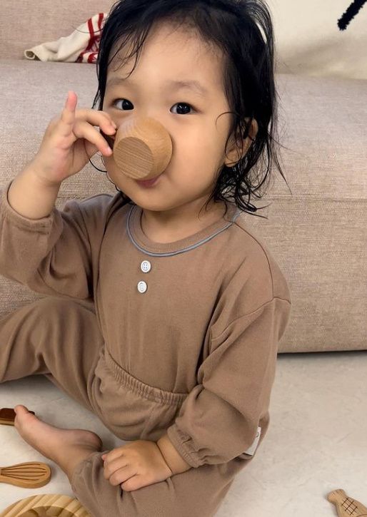 공개된 사진에는 카페 놀이에 푹 빠진 딸 서후 양의 모습이 담겼다. 내복 차림의 서후 양은 앙증맞은 새끼손가락을 쭉 편 채 커피 마시는 시늉을 해 귀여움을 자아낸다.
