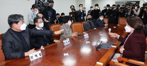 초당적 정치개혁 의원모임 - 더불어민주당 전해철 의원과 정의당 심상정 의원이 16일 오전 서울 여의도 국회 의원회관에서 열린 초당적 정치개혁 의원모임에서 이야기를 나누고 있다. 연합뉴스 |