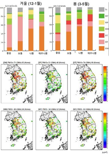 반면 봄철 고농도 미세먼지 사례는 고기압성 순환 발달 및 대기안정도를 강화하는 대륙성 온난 및 열대 기단과 관계가 있음을 찾아냈다.