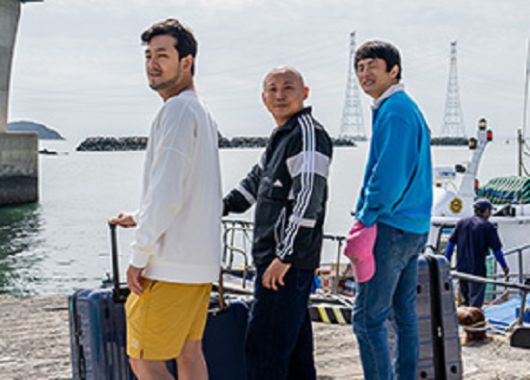 먼저 ‘침펄기’가 마치 초호화 여행을 앞둔 듯 여행의 설렘만큼이나 한 짐 가득 단단히 채비한 모습이 눈에 띈다. 그러나 청량한 하늘, 푸르른 물빛의 배경과는 대조되는 ‘침펄기’의 허탈한 웃음과 어리둥절한 표정은 이들이 크나큰 함정에 말려들었음을 짐작하게 한다.