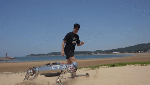 국내 연구진이 해변의 모래사장처럼 발이 푹푹 빠지는 지형에서도 안정적으로 뛸 수 있는 개 형태의 사족 로봇을 개발했다. 험지를 순찰하거나 재난 현장에서 사람을 찾는 일 등에 활용될 수 있을 것으로 기대된다.