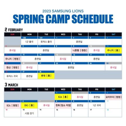 삼성 라이온즈는 지난 26일 "오는 30일부터 2023 시즌을 향한 해외 전지훈련 일정을 시작한다. 이번 전지훈련은 40일간 오키나와에서 진행된다"라며 "라이온즈 스프링캠프 전용 구장인 '온나손 아카마구장'에서 훈련과 연습경기를 병행할 계획"이라고 밝혔다.