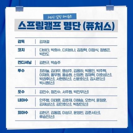 퓨처스에선 신인 12명을 포함해 36명의 선수가 명단에 이름을 올렸다.