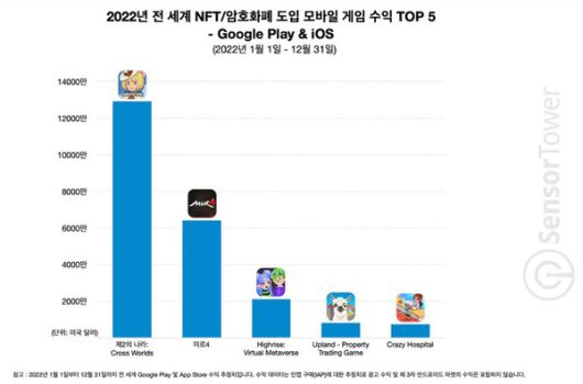 넷마블이 블록체인 게임 시장에서 경쟁력을 더해가고 있다는 것도 주목된다. 센서타워가 발표한 자료에 따르면, '제2의 나라: 크로스 월드'가 지난해 기준 암호화폐 및 NFT를 도입한 모바일게임 중 수익 1위를 차지한 것으로 조사되기도 했다.