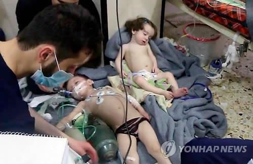 지난 2018년 4월 시리아 두마에서 화학무기 공격을 받고 치료 중인 아이들 |