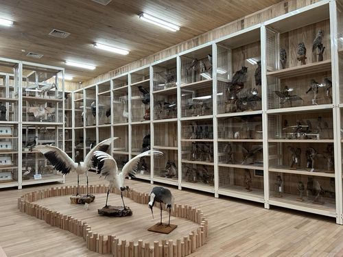 수장고 안으로 들어선 뒤 제일 먼저 눈에 들어온 것은 마치 살아있는 듯한 두루미. 두루미는 전 세계적으로 1천600마리 정도만 남아있는 멸종 위기의 새로, 보통 학(鶴)으로 잘 알려져 있다.