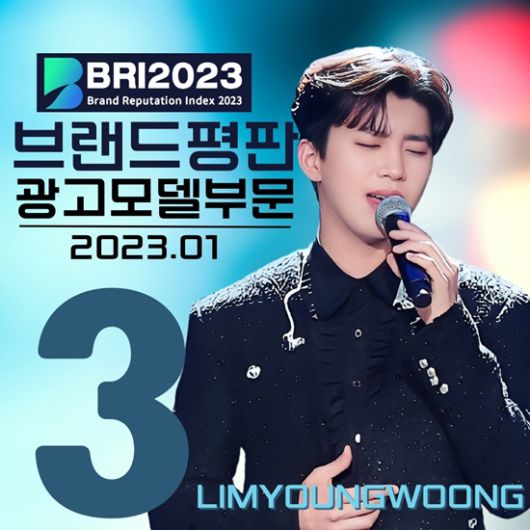 한국기업평판연구소는 2022년 12월 28일부터 2023년 1월 28일까지 측정한 광고모델 브랜드 빅데이터 분석결과다. 임영웅은 1위 뉴진스 2위 아이유에 이어 3위로, 전달에 비해 두 계단 상승했다.
