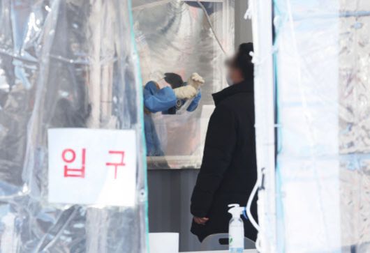 설 연휴 마지막 날인 지난 24일 오후 경기도 안성시 경부고속도로 안성휴게소 서울방향에 설치된 코로나19 임시선별검사소에서 시민이 검사를 받고 있다. (사진=연합뉴스) |