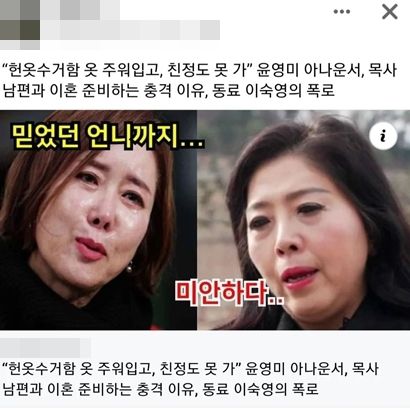 지난 18일에는 SBS 전 아나운서 윤영미가 악의적으로 편집된 가짜 뉴스에 항의했다.