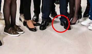 28일(현지시간) 미러, 데일리메일 등 외신에 따르면 푸틴 대통령은 지난 25일 러시아 '학생의 날'을 맞아 모스크바 주립 대학교를 찾았다. 푸틴 대통령은 학생들과 함께 단체 기념사진을 찍었다. 가운데에 선 그가 다리를 조금 벌린 자세를 취하면서 구두의 뒷굽이 카메라에 찍혔다.