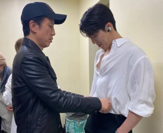 공개된 사진에는 적재의 전국투어 콘서트 스태프들의 모습이 담겨있다. 특히 안테나 수장 유희열의 모습이 눈길을 모은다. 유희열은 검은색 외투에 모자를 착용하고 적재의 옷매무새를 고쳐주고 있다.