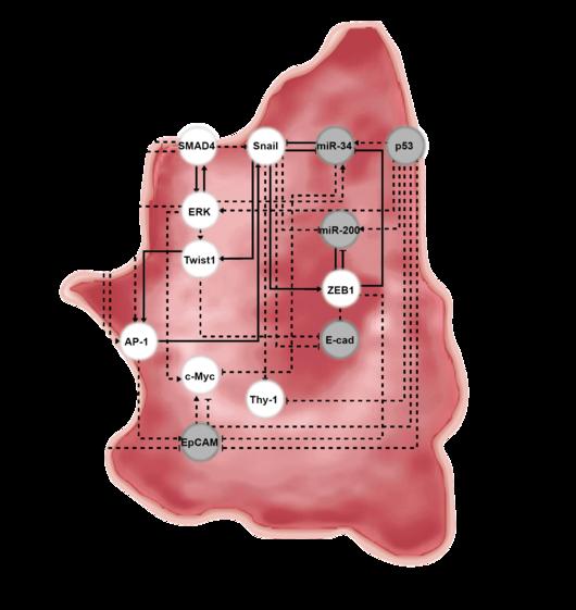 연구팀은 복잡한 EMT를 지배하는 유전자 조절 네트워크의 수학모델을 정립한 후, 대규모 컴퓨터 시뮬레이션 분석 및 복잡계 네트워크 제어기술을 적용해 중간엽세포 상태인 폐암 세포를 EMT 하이브리드 세포 상태를 회피하면서 전이 능력이 상실된 상피세포 상태로 역전시킬 수 있는 세 개의 핵심 분자 타깃인 ‘p53 (암 억제 단백질)’, ‘SMAD4 (EMT를 조절하는 대표적 신호전달을 매개하는 중심물질로 SMAD 그룹에 포함된 단백질)’와 ‘ERK1/2 (세포의 성장 및 분화에 관여하는 조절인자)’를 발굴하고 이를 분자 세포실험을 통해 검증했다. 실제 인체 내 암 조직의 환경에서처럼 자극이 주어진 상황에서 중간엽세포 상태가 상피세포 상태로 역전될 수 있음을 증명해 그 의미가 크다.