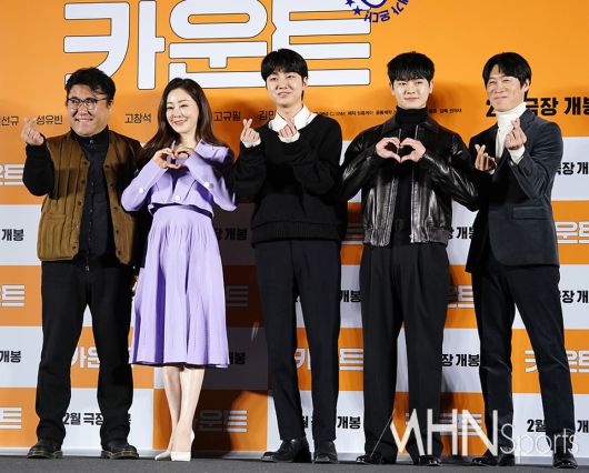 30일 오전 서울 용산구 CGV용산아이파크몰에서 영화 '카운트'(감독 권혁재) 제작보고회가 열렸다. 이날 제작보고회에 참석한 권혁재 감독, 배우 고창석, 오나라, 성유빈, 장동주, 진선규가 포즈를 취하고 있다. <저작권자 Copyright ⓒ MHN스포츠 무단전재 및 재배포 금지>