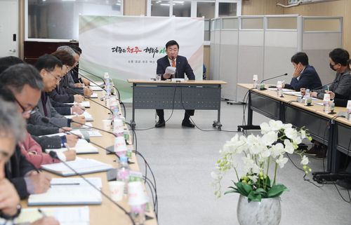 (청주=연합뉴스) 박재천 기자 = 이범석 청주시장은 30일 "중앙부처 공모사업 등 국비 확보를 위해 열정적으로 노력해달라"고 주문했다.