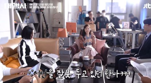 [OSEN=김수형 기자] '대행사'에서 메이킹 영상이 공개된 가운데 이보영이 후배 손나은과의 투샷을 신경쓴 듯한 모습이 웃음을 자아냈다.