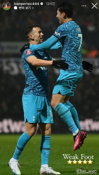 페리시치도 양발을 모두 잘 쓰기로 유명하다. 그런 페리시치의 SNS글은 손흥민의 왼발이 정말 엄청나다는 인정과 다름없다.