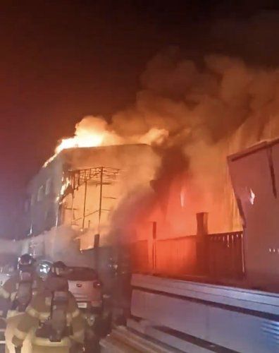 (서울=연합뉴스) 30일 오후 9시 22분께 대구시 북구 동호동의 한 조경시설 제조업체에서 화재가 발생해 소방당국이 화재를 진압하고 있다.