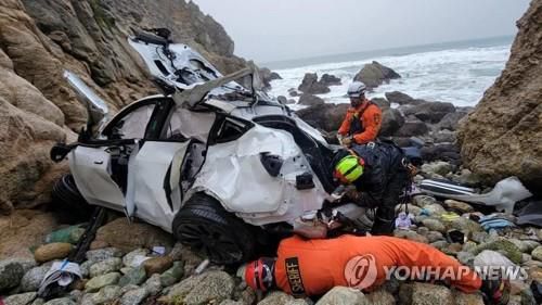 미국 캘리포니아주 해안 절벽에서 고의 사고로 추락한 테슬라 전기차 |