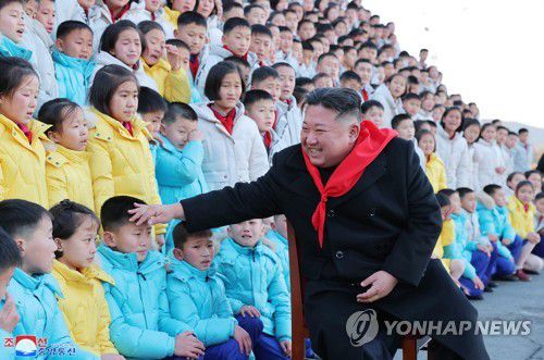김정은, 조선소년단 제9차 대회 대표들과 기념사진 |