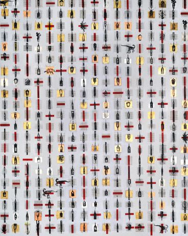 June Yun: ‘LOVE-A Message in a bottle-red stripes’, 152x122cm, Mixed media on Canvas |