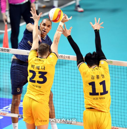 우리카드 아가메즈가 31일 서울 장충체육관에서 열린 2022~2023 V-리그 KB손해보험과 경기에서 스파이크를 날리고 있다. 2023. 1. 31.장충 | 최승섭기자 thunder@sportsseoul.com [기사제보 news@sportsseoul.com] Copyright ⓒ 스포츠서울&sportsseoul.com