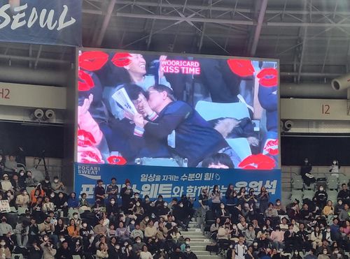 이어 화면에 잡힌 60대 부부도 볼 뽀뽀를 하며 관중들의 큰 갈채를 받았다.