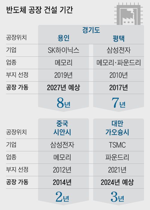 반도체 업계 관계자는 “반도체는 기술이 앞서고, 점유율이 높은 1등 업체가 절반 이상의 이익을 독식하는 산업”이라며 “인프라 지원이 6개월 늦어지면 경쟁력은 6개월 늦어지는 게 아니라 아예 못 따라가게 된다”고 말했다.