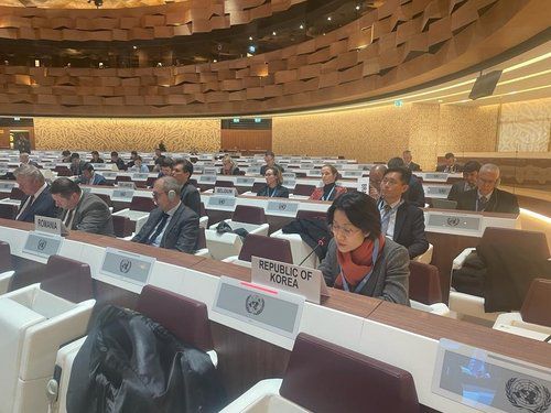 (제네바=연합뉴스) 안희 특파원 = 유엔 군축회의 한국 대표인 윤성미 주제네바 한국대표부 차석대사가 31일(현지시간) 오전 유엔 제네바 사무소에서 열린 군축회의 속행 회의에서 발언하고 있다. 2023.2.1 [주 제네바 한국대표부 제공. 재판매 및 DB 금지]