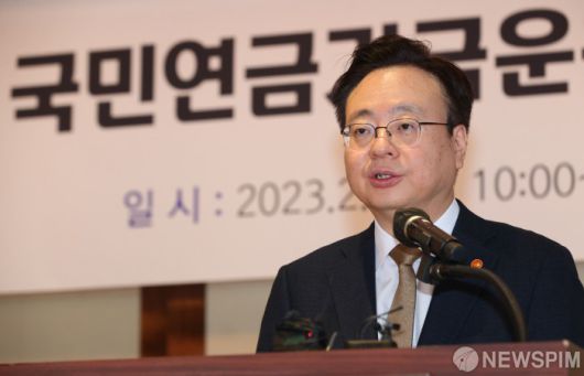 [서울=뉴스핌] 황준선 기자 = 조규홍 보건복지부 장관이 2일 오전 서울 중구 웨스틴조선호텔에서 열린 국민연금기금운용위원회 합동 연찬회에서 인사말을 하고 있다. 2023.02.02 hwang@newspim.com 저작권자(c) 글로벌리더의 지름길 종합뉴스통신사 뉴스핌(Newspim), 무단 전재-재배포 금지