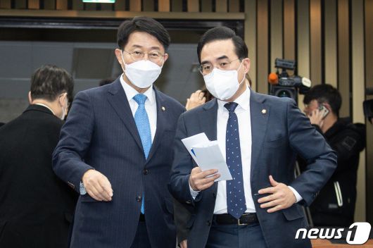 (서울=뉴스1) 유승관 기자 = 박홍근 더불어민주당 원내대표(오른쪽)와 조정식 사무총장이 2일 서울 여의도 국회에서 열린 의원총회에 참석하며 대화하고 있다. 2023.2.2/뉴스1fotogyoo@news1.krCopyright ⓒ 뉴스1. All rights reserved. 무단 전재 및 재배포 금지.