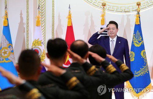 ![진급 장성 경례 받는 윤석열 대통령(서울=연합뉴스) 안정원 기자 = 윤석열 대통령이 3일 청와대 영빈관에서 열린 상반기 육군ㆍ해군ㆍ해병대ㆍ공군 준장 진급자 및 진급 예정자 삼정검 수여식에서 진급 장성으로부터 거수경례를 받고 있다. 삼정검의 '삼정'은 육·해·공군이 일치하여 호국·통일·번영의 3가지 정신 달성을 의미한다. 2023.2.3 [대통령실통신사진기자단] jeong@yna.co.kr](https://thumb.zumst.com/500x0/https://static.news.zumst.com/images/3/2023/02/03/PYH2023020311210001300_P2.jpg) |
