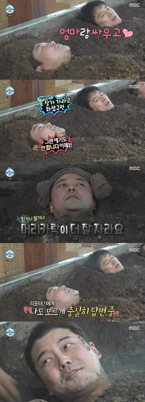 효소 찜질을 하던 전현무는 옆자리의 남성이 “머리카락이 더 잘 자란다”고 이야기하자 양머리 수건을 던져버려 웃음을 안겼다.