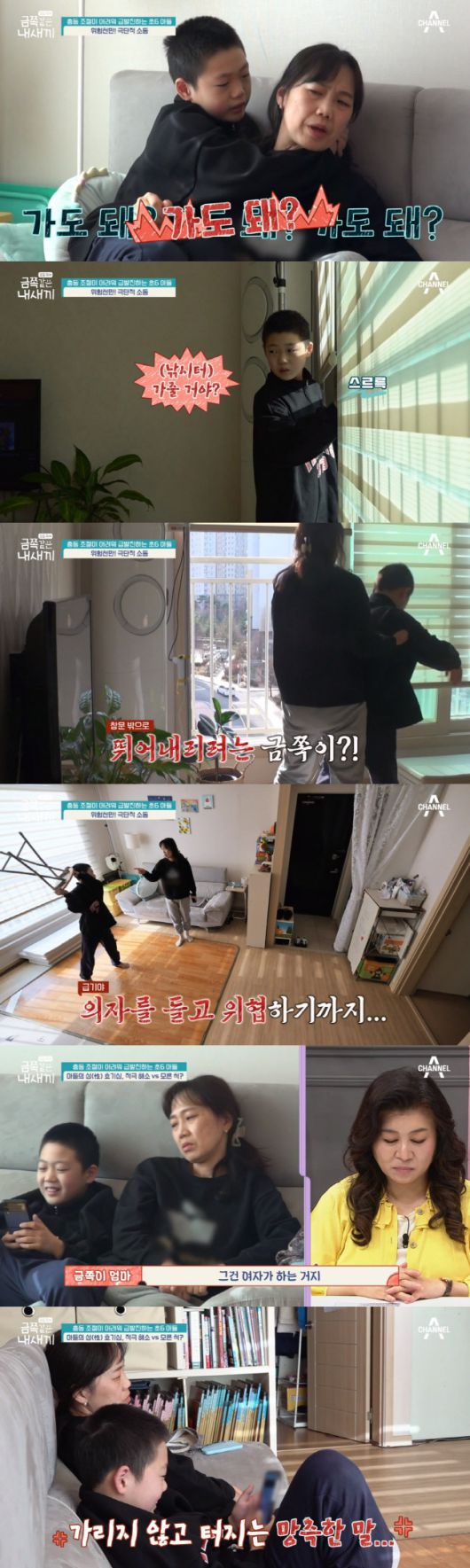 또 엄마의 목을 조르던 금쪽이는 갑자기 창문을 열었다. 그리고 창문 밖으로 뛰어내리려고 했다. 이 역시 엄마에게 저지당하자 의자를 들고 위협해 우려를 안겼다.