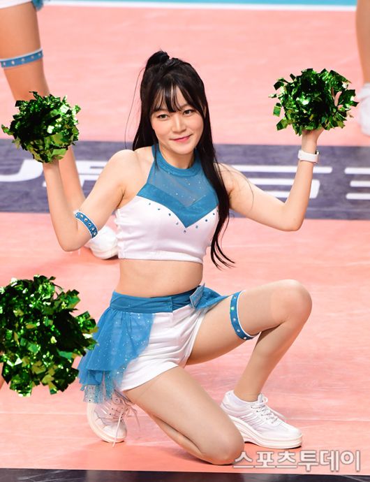 [스포츠투데이 방규현 기자] 2022-2023 V-리그 GS칼텍스-페퍼저축은행 경기가 5일 오후 서울 중구 장충체육관에서 열렸다. 이날 치어리더 응원하고 있다. 2023.02.05. [스포츠투데이 방규현 기자 sports@stoo.com]