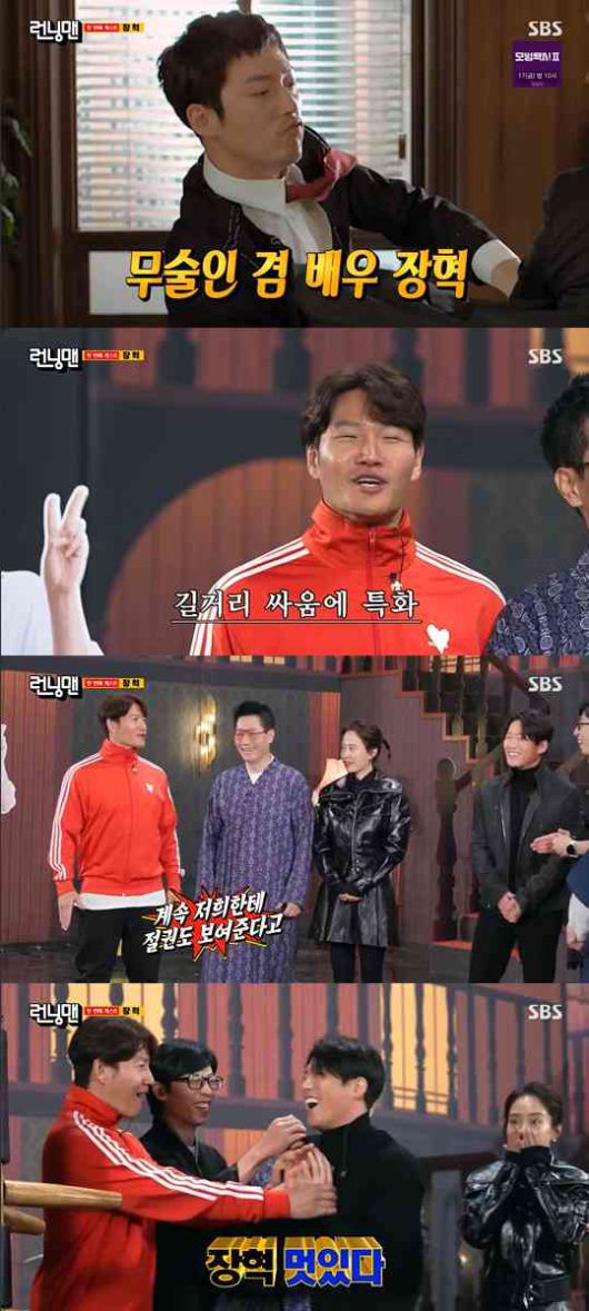 그리고 장혁도 등장했다. 장혁의 등장에 유재석은 "김종국이 싸움은 좀 하지만, 무술은 아니지 않냐"면서 반겼다.