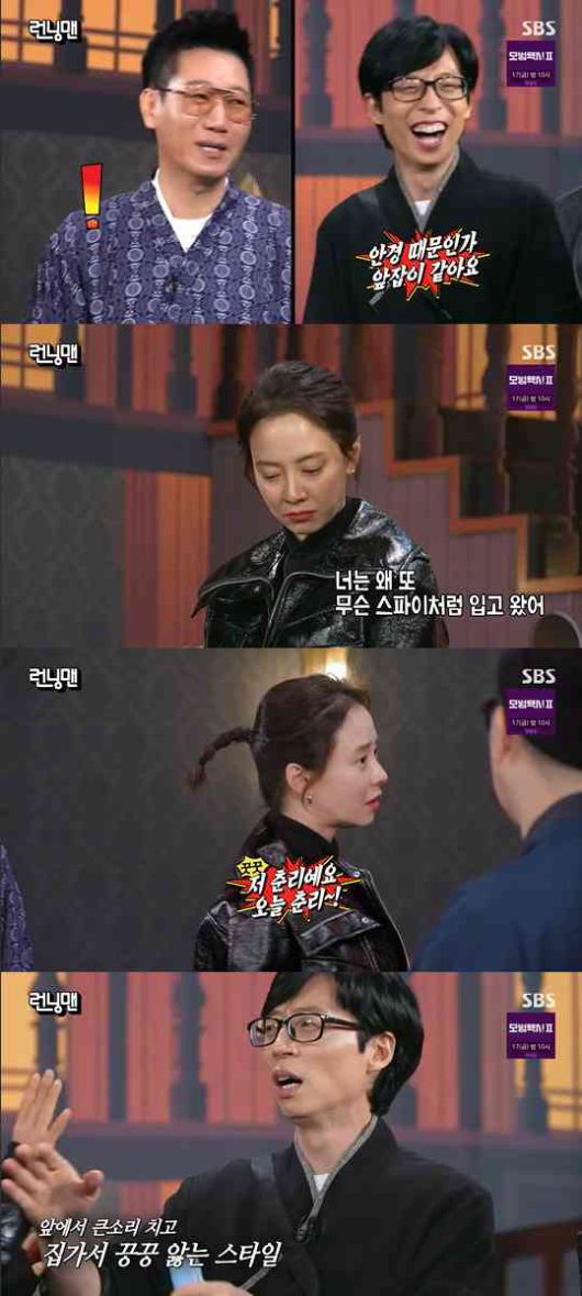 또 유재석은 올블랙 가죽 의상을 입은 송지효에게 "너는 왜 또 스파이처럼 입고 왔니?"라고 말했고, 송지효는 "저 오늘 춘리다"라고 말하면서 큰소리를 쳤다.