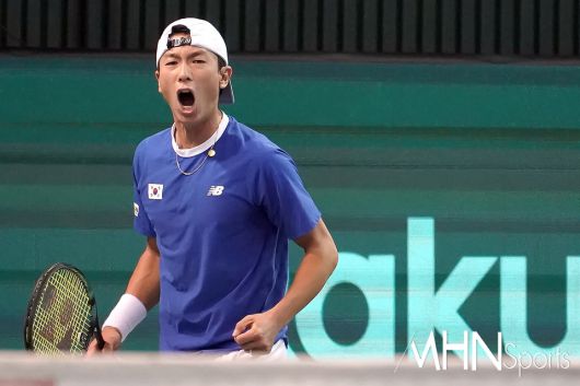 (MHN스포츠, 박태성 기자) 5일 서울 송파구에 위치한 올림픽 실내 테니스장에서 한국 남자 테니스 대표팀이 '2023 데이비스컵 최종본선진출전(2023 DavidCup Qualitiers)'을 두고 벨기에와 경기를 펼쳤다. 대회 첫날 2패에 그친 한국은 복식과 3, 4단식 모두 이겨 3-2로 데이비스컵 16강 진출을 따냈다.