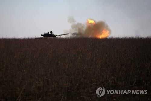 우크라이나 동부 요충지 바흐무트에서 포격 중인 우크라이나 탱크 |