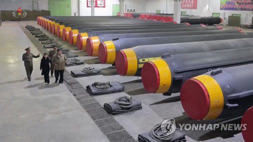 지난달 1일 공개된 김정은 북한 국무위원장이 김주애와 '화성-12형' 둘러보는 모습 |