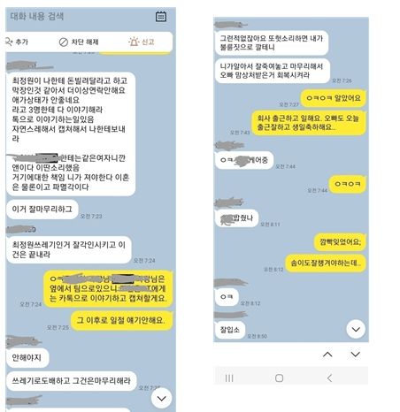 끝으로, 며칠 전 A씨의 배우자인 B씨는 ‘남편의 강압적인 태도로 인하여 어쩔 수 없이 최정원과의 관계에 대하여 인정하는 취지의 거짓 각서를 써주었으나 현재는 매우 후회된다’, ‘지금이라도 사실관계를 바로 잡고 싶다’는 취지로 자필진술서와 카카오톡 캡쳐화면(A씨의 강압적인 태도 및 B씨가 거짓 각서를 쓰게 된 배경을 이해할 수 있는 내용)을 보내왔습니다. B씨의 뜻에 따라 위 진술서 사본을 입장문 말미에 편철하였습니다.