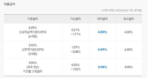 | 주택담보대출 변동금리(신규 코픽스 기준) | 연 5.080∼8.110% | 연 4.860∼6.890% | -0.220%p, -1.220%p |