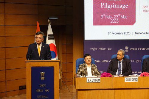 (뉴델리=연합뉴스) 김영현 특파원 = 6일 인도 뉴델리에서 한국 불교 성지순례단 행사에 대해 브리핑하는 장재복 주인도대사(왼쪽). 2023.2.6 cool@yna.co.kr ▶제보는 카카오톡 okjebo▶연합뉴스 앱 지금 바로 다운받기~▶네이버 연합뉴스 채널 구독하기 <저작권자(c)연합뉴스. 무단전재-재배포금지.>