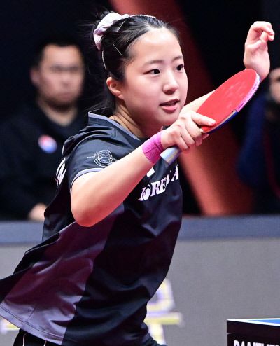 신유빈은 “첫 경기라 부담이 많았다. 도전한다는 마음으로 경기에 나섰는데 좋은 결과가 나왔다”고 웃었다.