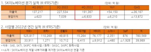 작년 4분기는 매출은 19조1367억원, 영업손실이 6833억으로 적자전환했다. 사업별 영업손실이 석유 6612억원, 화학 884억원, 배터리 2566억원 등으로 적자를 기록했다.